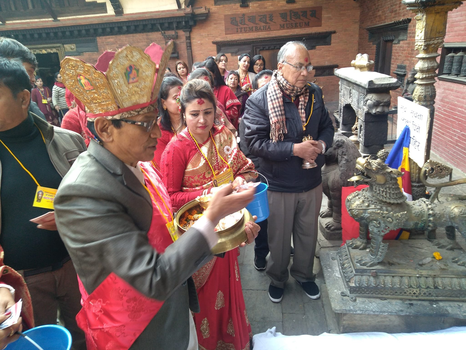 गुरुजु गौतम रत्न बज्राचार्यं विहार पतिकं क्वा:पा:द्य:या न्ह्य:ने पञ्चोपचार पूजा यानाबिज्या:गु ख: । राजगुरु मञ्जुश्री रत्न बज्राचार्यं विहार पतिकं बहा: पूजाया अन्त्यय् अर्घ वाक्य ब्वनाबिज्याना: कजि नवराज बज्राचार्ययात अर्घ बिइके ब्यूगु ख: । श्रीखण्ड तरुमूल महाविहार संरक्षण तथा संचालन समितिया छ्याञ्जे गौतममान शाक्यं सकल जगतसत्व प्राणीया उद्धार जुइमा धैगु कामना यासें थुगु बहा: पूजा यानागु खँ कनादिल ।